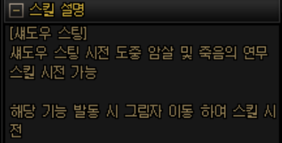 섀도우 스팅은 그림자 이동으로 캔슬이 가능해서 다른 스킬 연계 옵션이 무의미합니다.