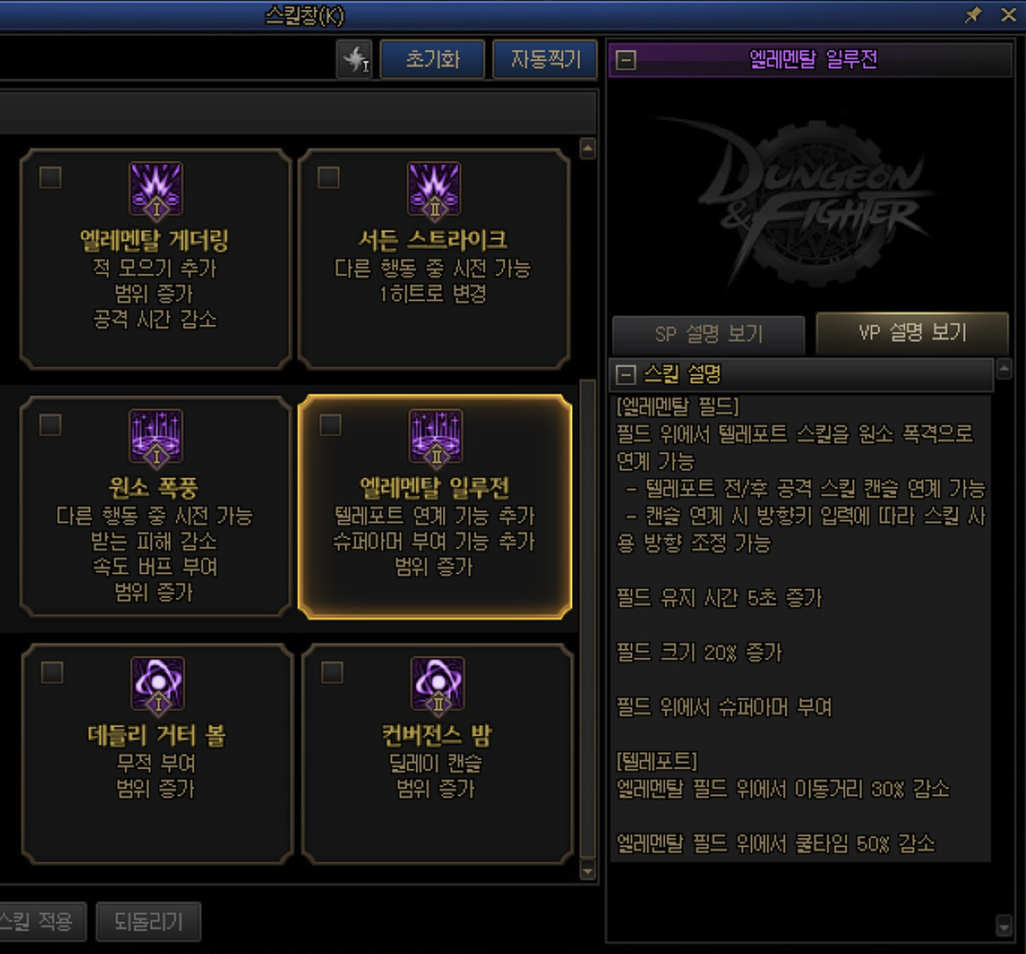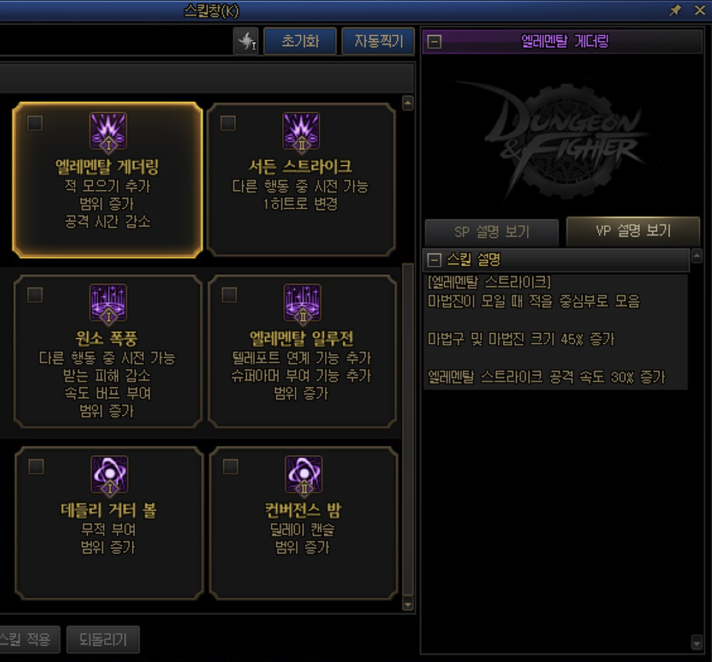 2. 원소폭격 구조로 변경되어 너무 빨리 캔슬하면 스킬이 씹힙니다.