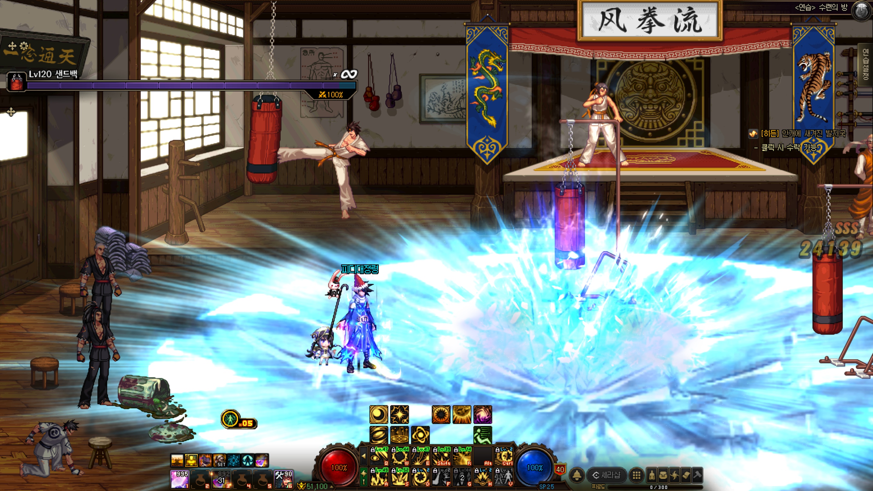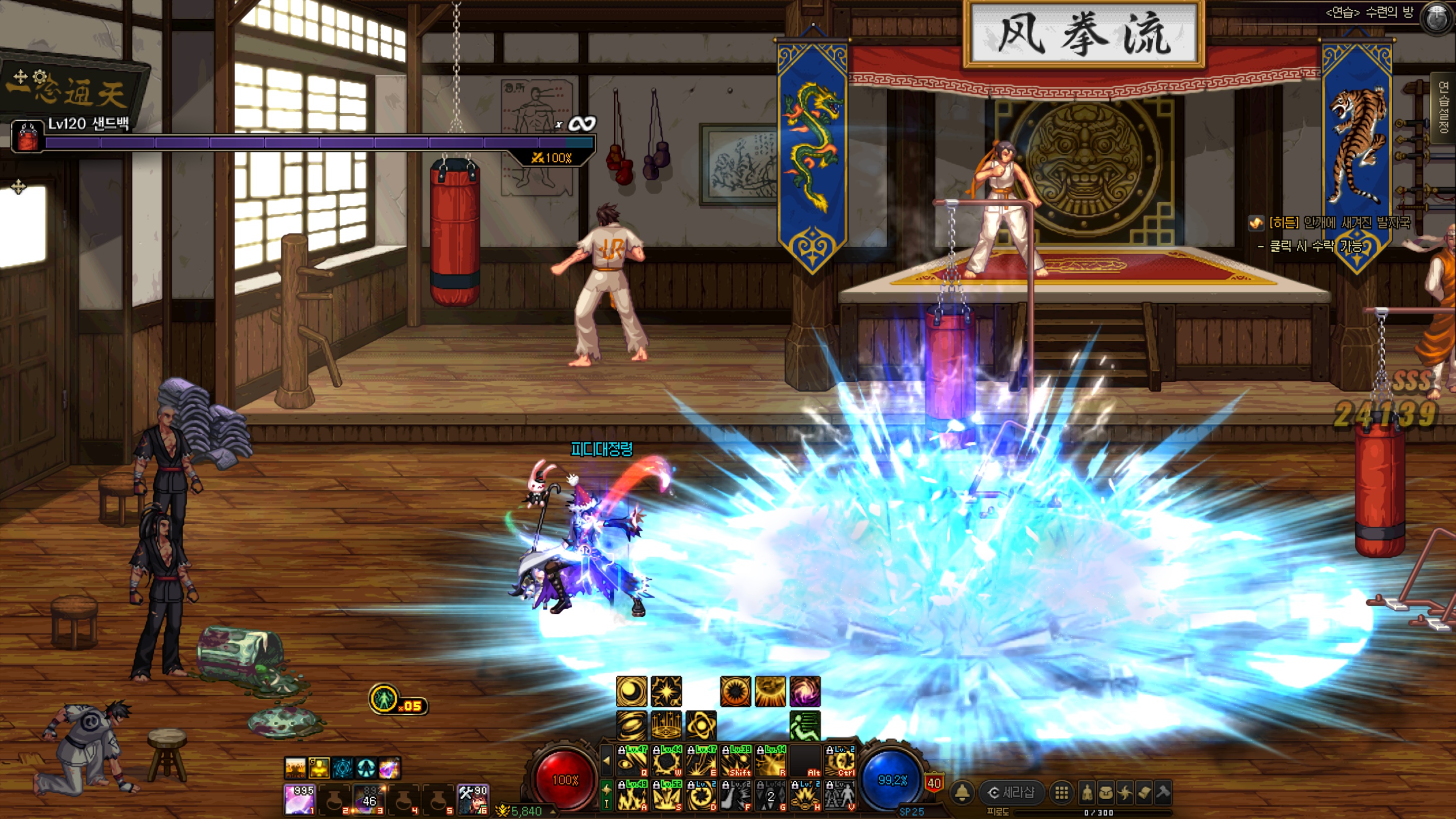 범위 0% 개화 없는 평범한 아크샤입니다. 위쪽 샌드백이 타격되죠.