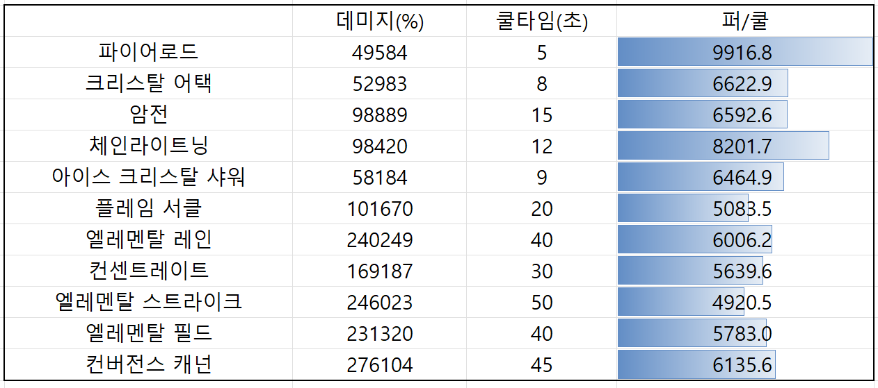 [엘레멘탈 바머] 퍼스트서버 엘레멘탈 바머 스킬 VP/개화 간단히 분석해보기 (9)