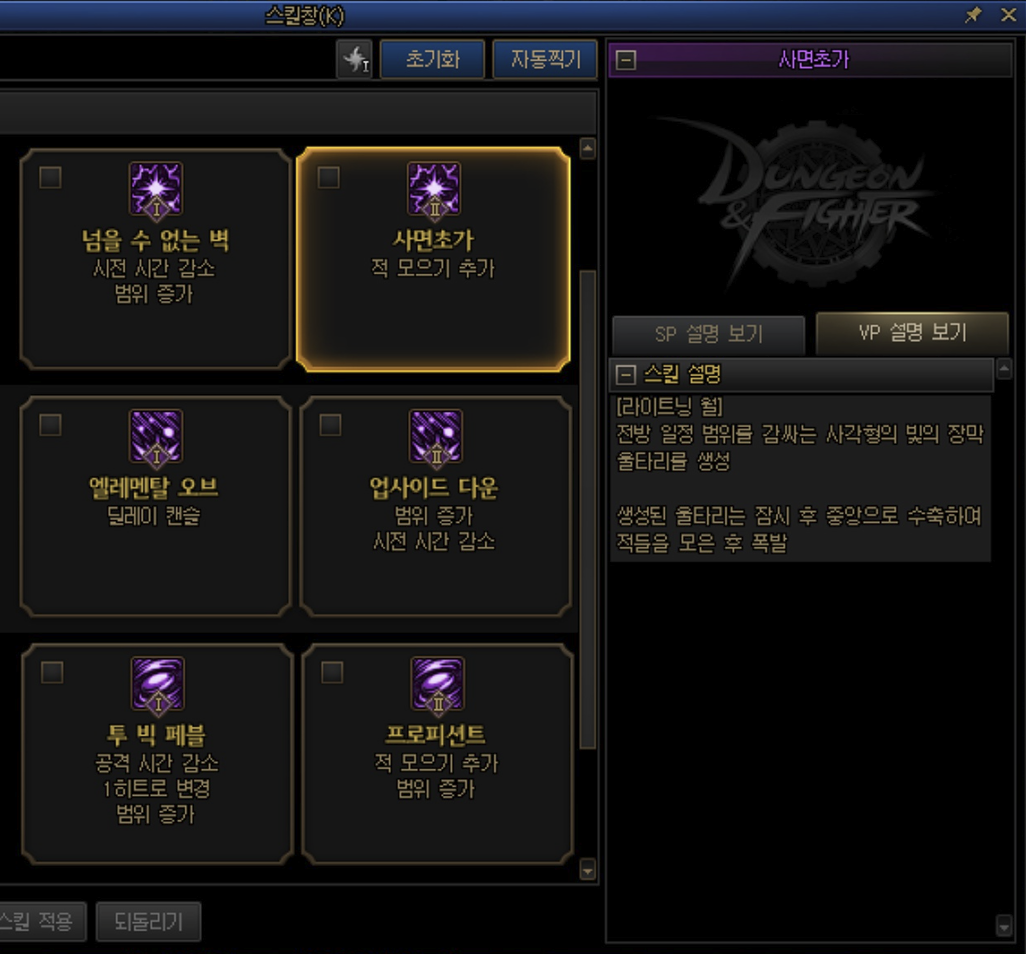 또 버그인지 모르겠는데 범위 증가 옵션도 전혀 안 받아서, 멋들어진 이펙트에 비해 실제 타점은 형편없을 정도로 작습니다.