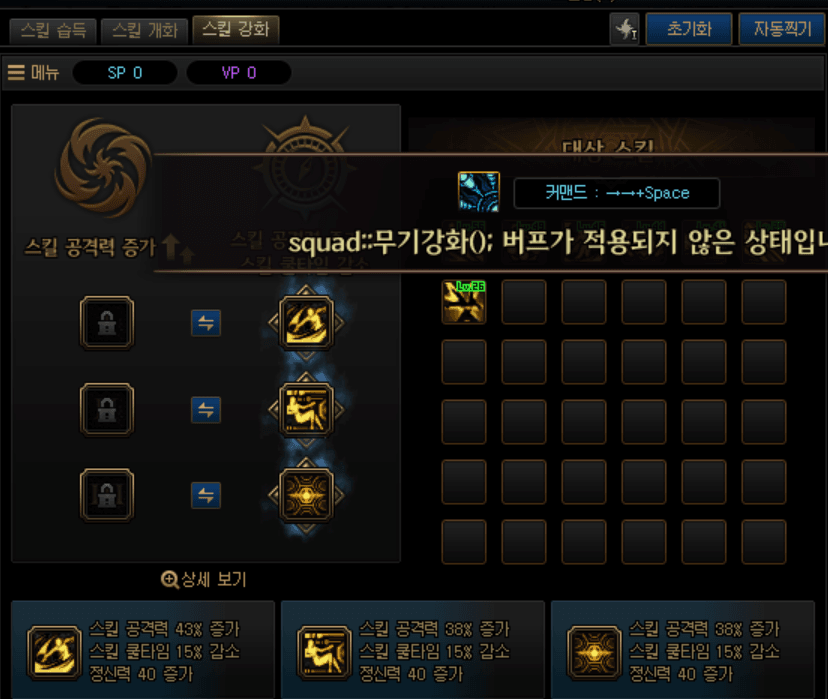 이건 속도 버프를 강화해주는 부가효과가 달린 스킬개화인데요, 개인적으로는 이걸 빼고, 아예 속도버프를 안누르는걸 권장합니다.