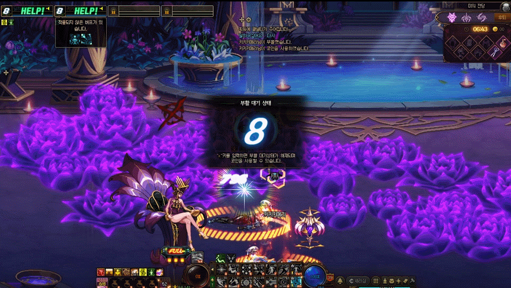 ↑스페이스, 스페이스, ↓스페이스로 스킬창에 올리지 않은 방어막, 아드(딜증폭), 해피(속도버프)를 사용하고 있습니다.