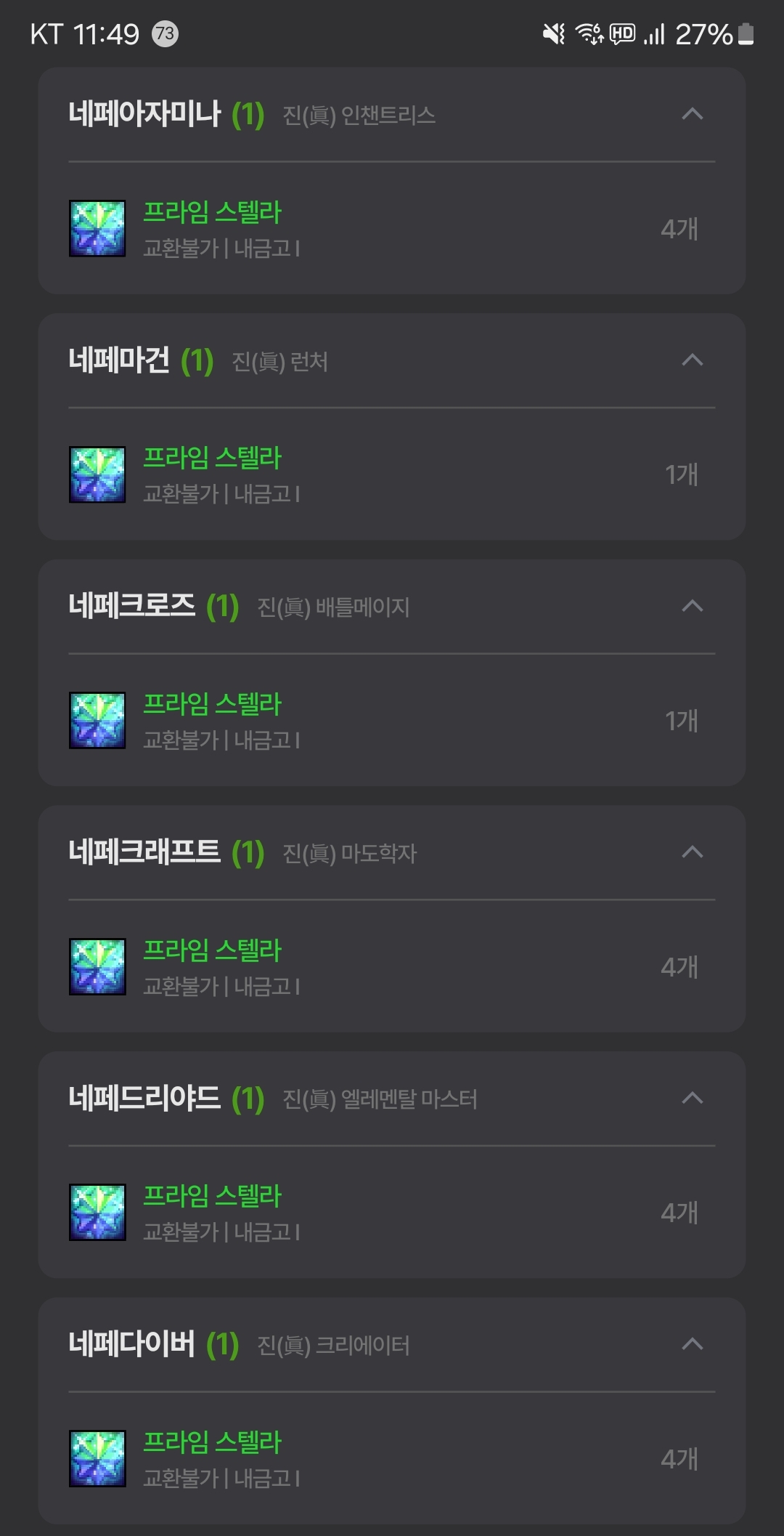 에픽 항아리는 하나도 안 뜨고 태초 애매하던 애들 4스텔라단만 됏서