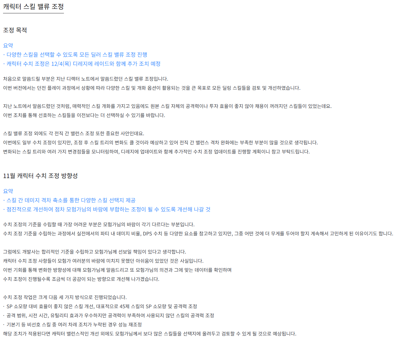 본섭 열리자마자 수련방으로 뛰어가서 변경점 확인하고 글 정리하는데, 이제야 끝났네요..