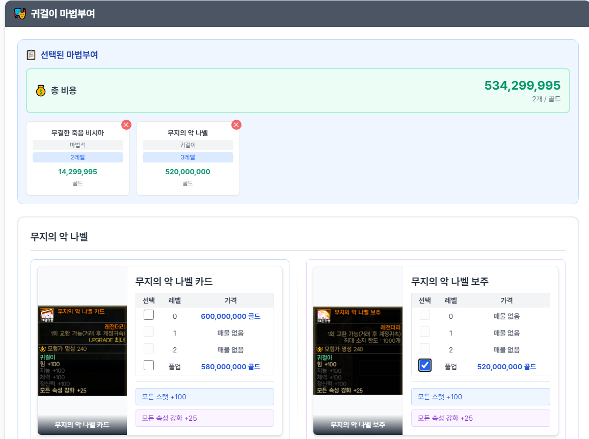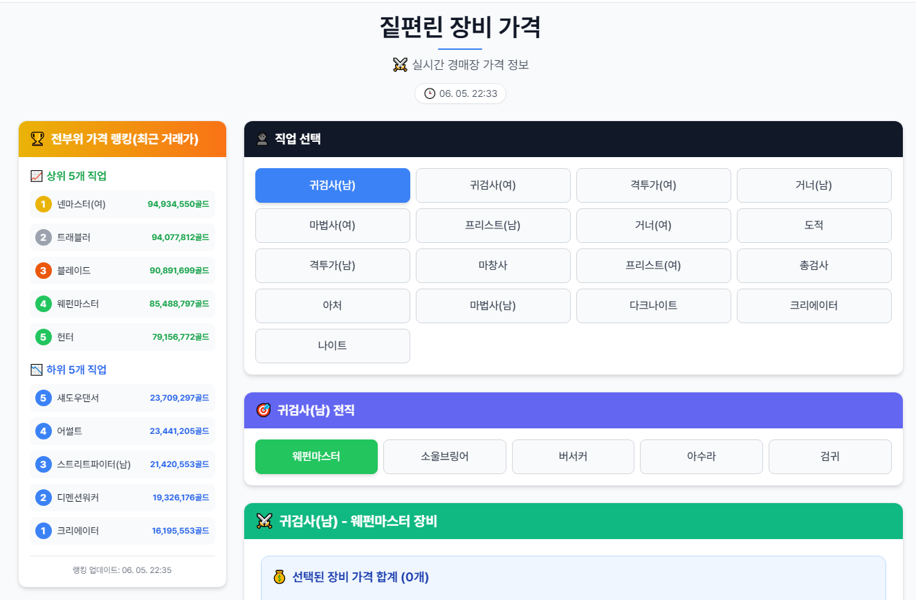 소울 가격, 마부 검색, 직업별 편린 가격을 제공하는 서비스입니다.