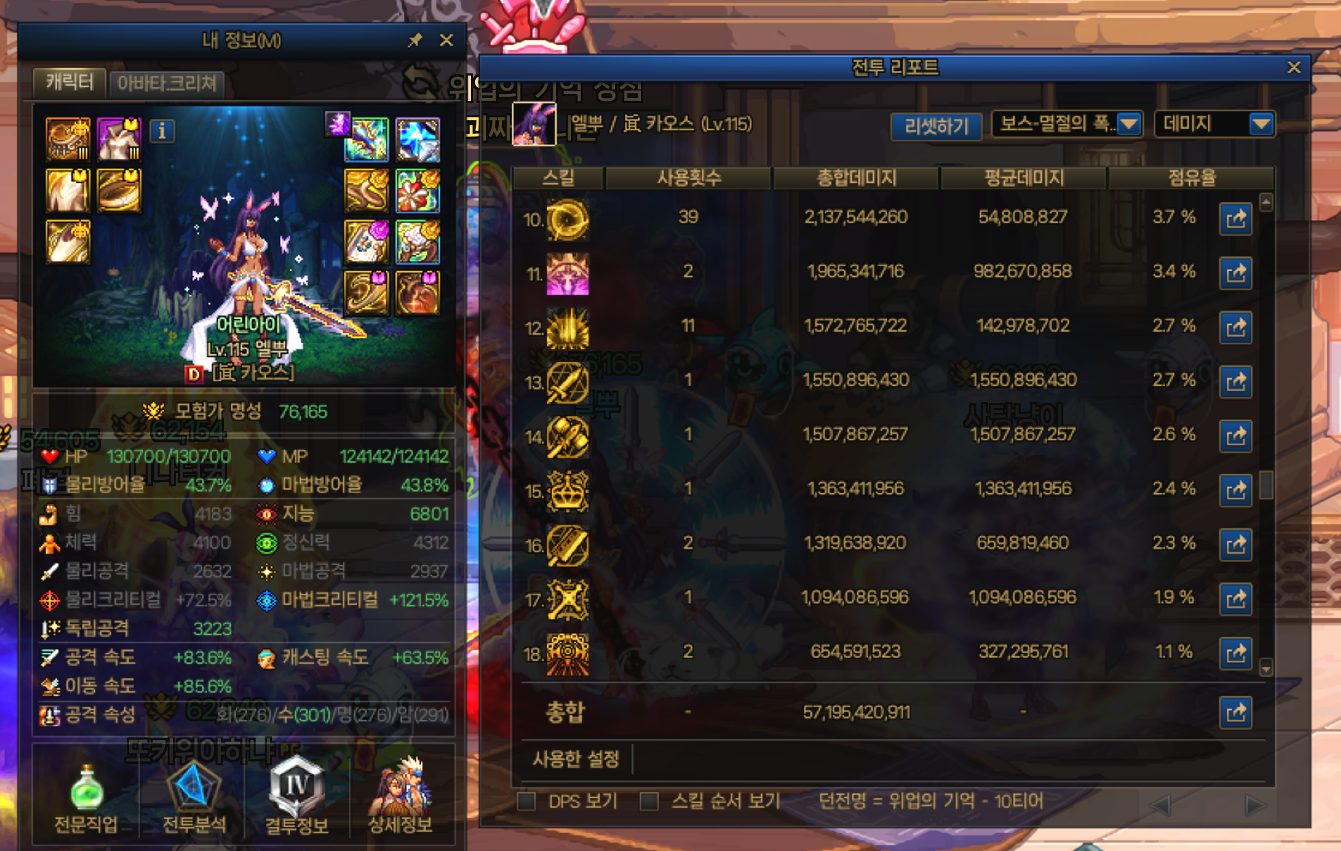 그후 천공 - 팬시 - 파택 - 매시브 - 제노 순으로 쓰고 그 이후는 계속 평타 + 쿨온 천공검만 쓰면됩니다.