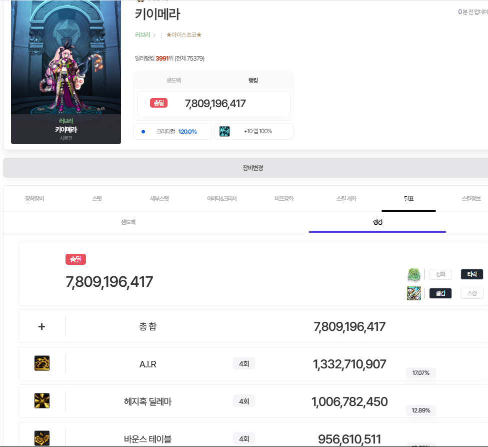 키메라는 스킬 수도 그렇고 연습한 것과 비슷하게 나와줘서 너무 마음에 듭니다.