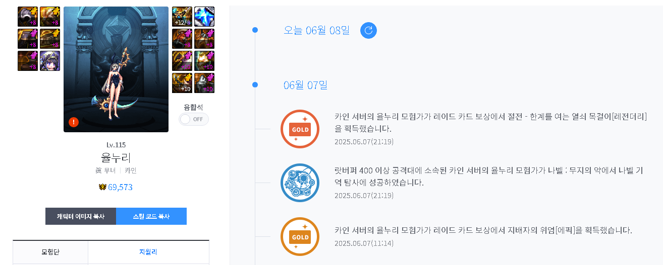 [공통] 모험단 : 지월리 / 캐릭터 : 율누리 레이드 비매너 박제