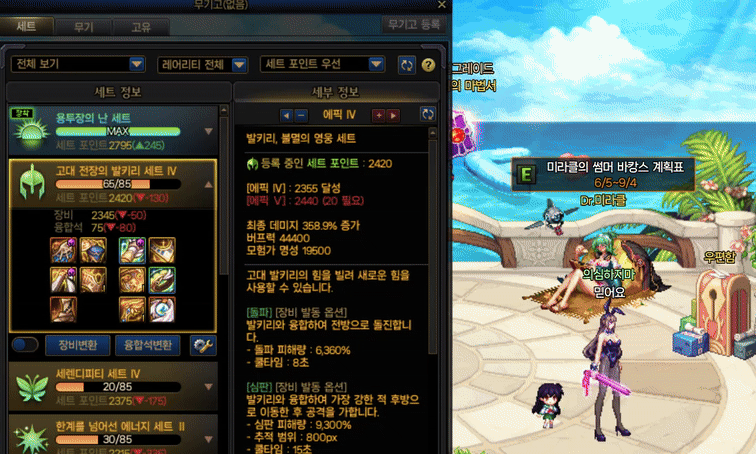 세트 적용 누른다음 장비도 검색 안되고 융합석도 검색 안됨