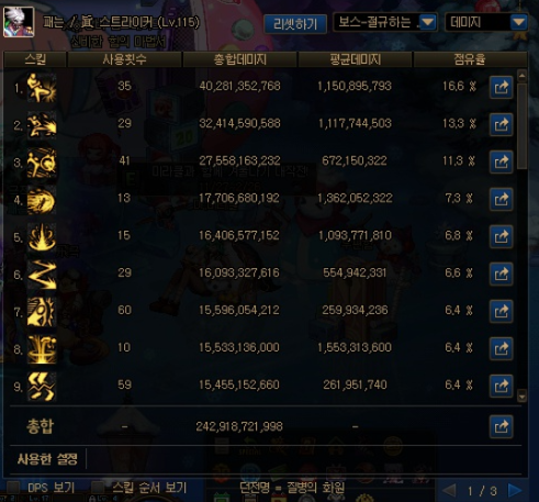 실제로도 강화 스킬을 제외하면 매우 비슷한 점유율이 나오는 것을 확인하실 수 있어요
