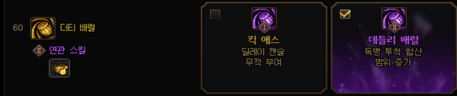 간단히 설명하면 바늘/일발화약성/그라운드태클 스킬제외후 독병/광폭혈쇄/비셔스래리어트를 찍는 스킬트리입니다
