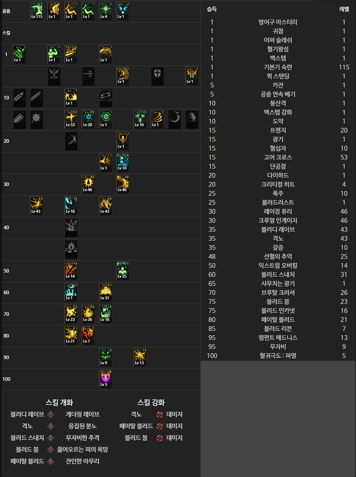 2. 필자가 쓰고 있는 스킬트리 (기본기 채용하는 스킬트리)
