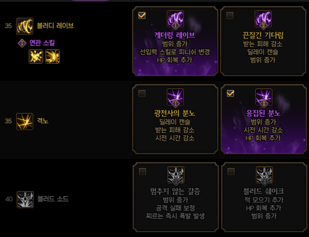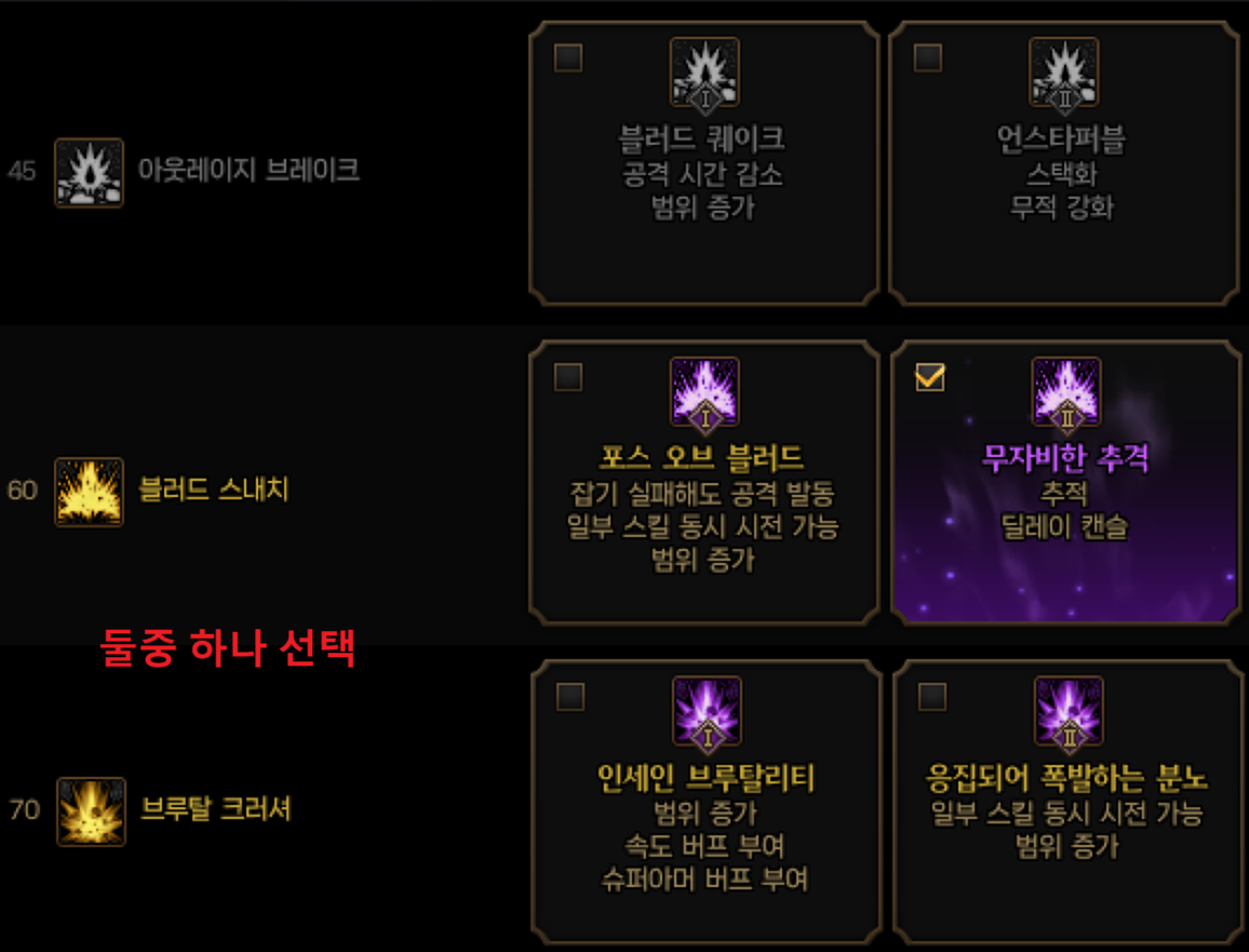 블러드 소드와 블러드 스내치를 모두 사용하는 스킬트리는