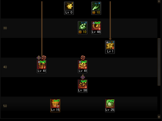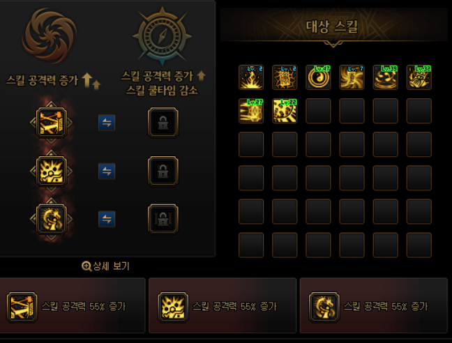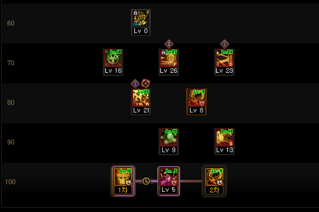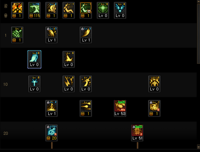 스킬트리. 스킬개화는 스킬 강화를 제외하고 칠흑과 동일 (스킬코드는 스킬강화때문에 다름)