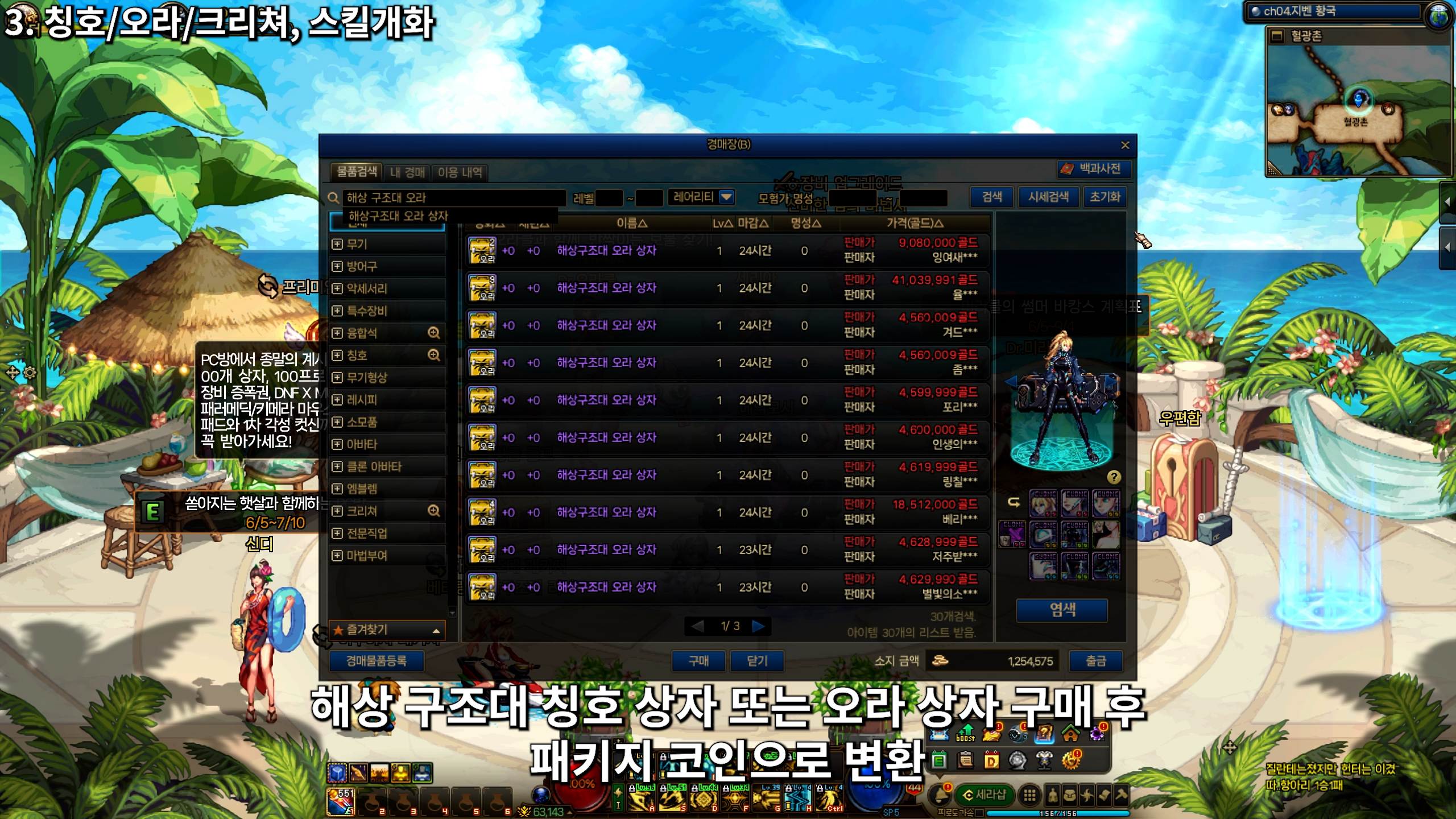 경매장에서 해상 구조대 칭호 상자 또는 해상 구조대 오라 상자 구매 후