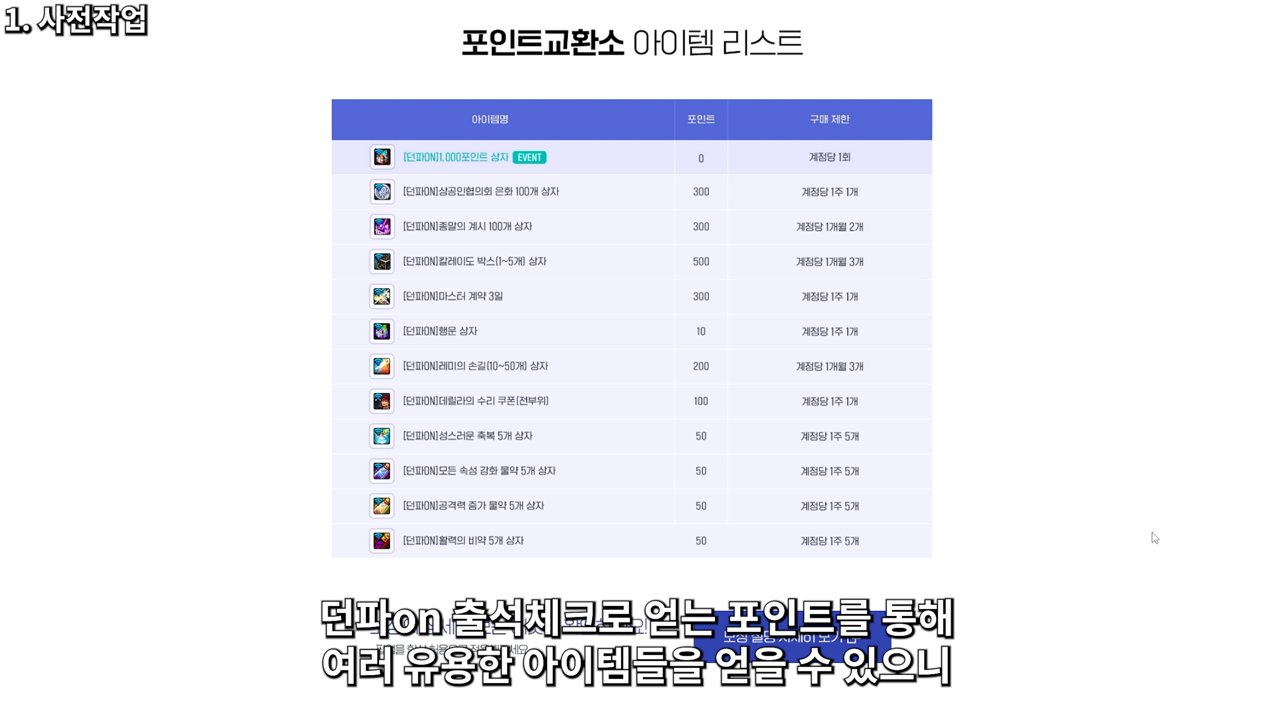 던파on 출석체크로 얻는 포인트를 통해 여러 유용한 아이템들을 얻을 수 있습니다