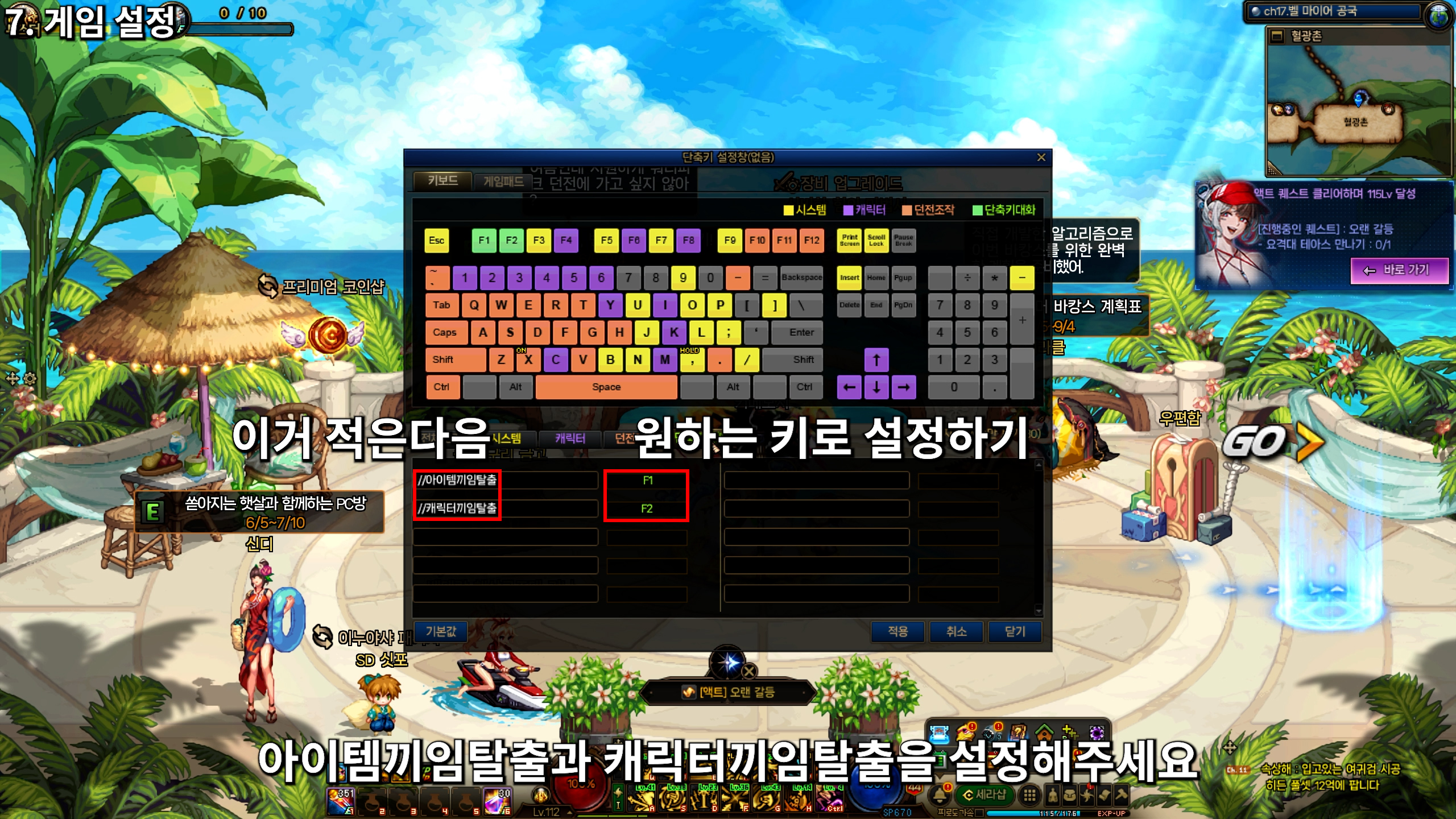 소모품(물약, 투함포)는 소모품 퀵슬롯에 두고 사용하면 되고