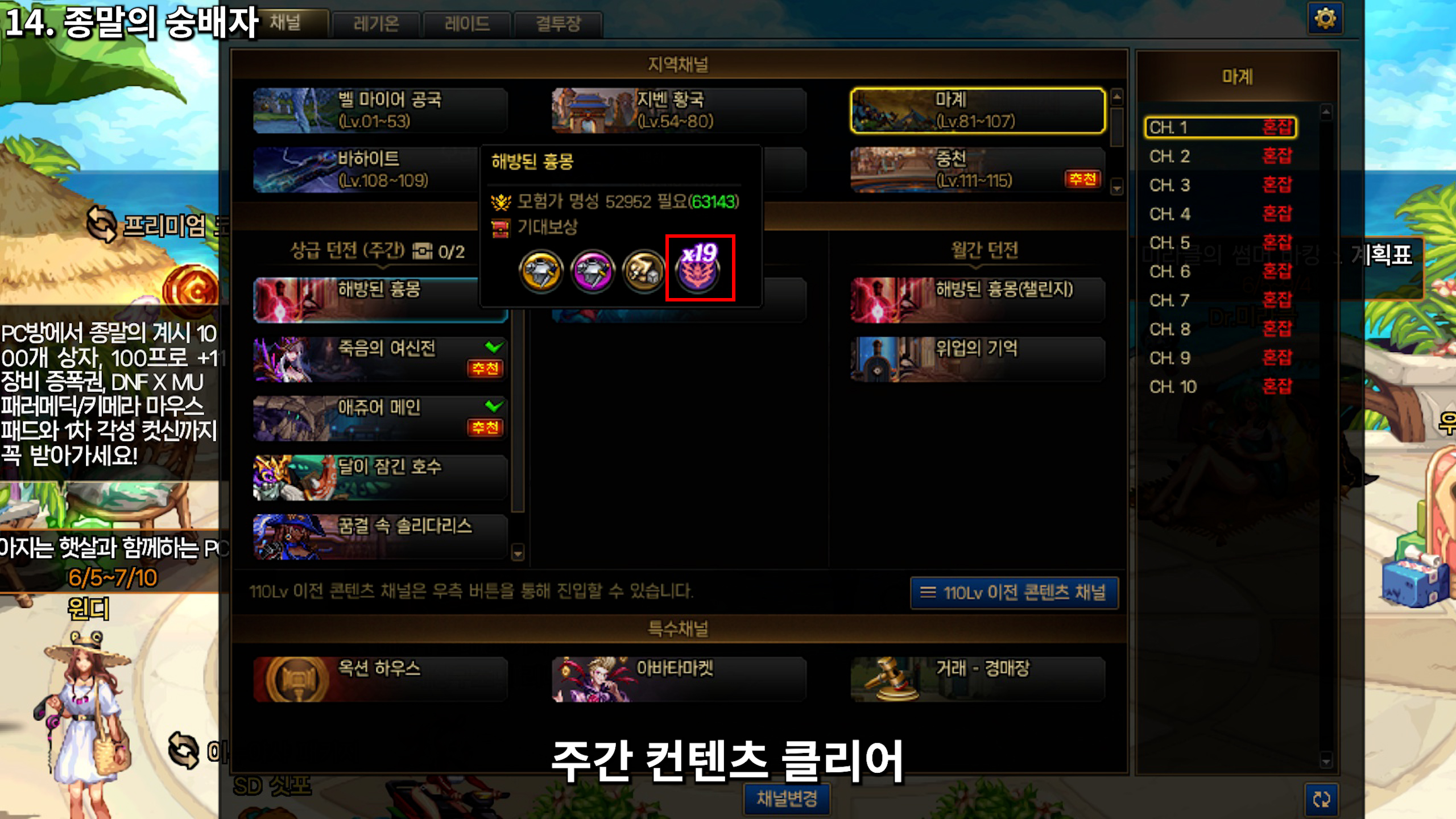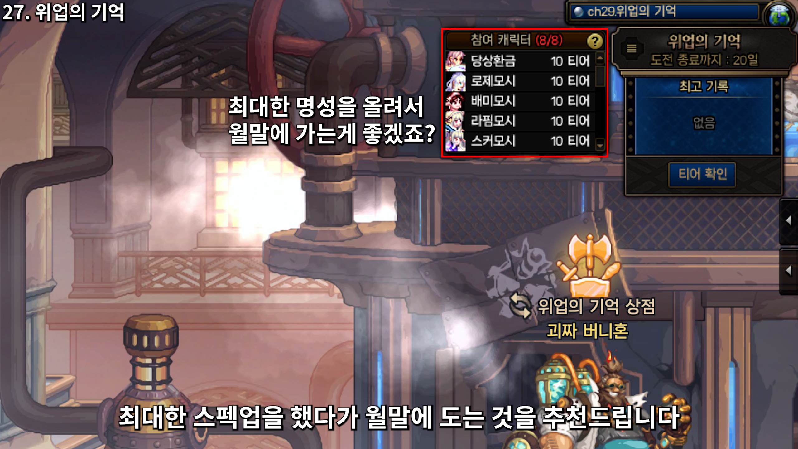 위업의 기억은 최대 8캐릭이용 가능한 월간 컨텐츠이니
