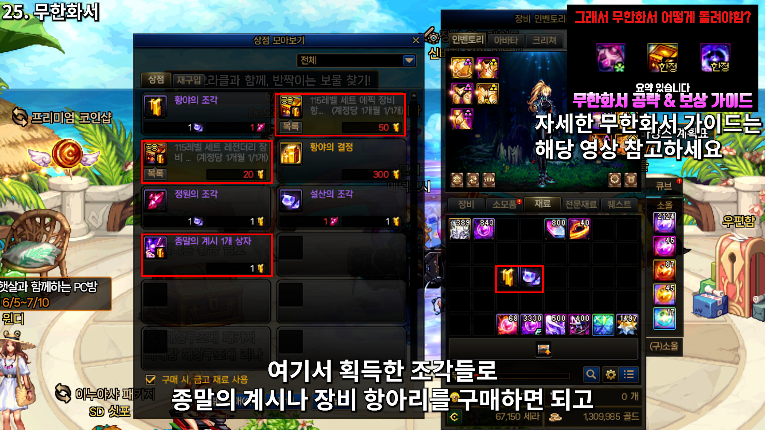무한화서 클리어를 통해 얻은 조각들은 장비 항아리나 종말의 계시를 구매하면 되고