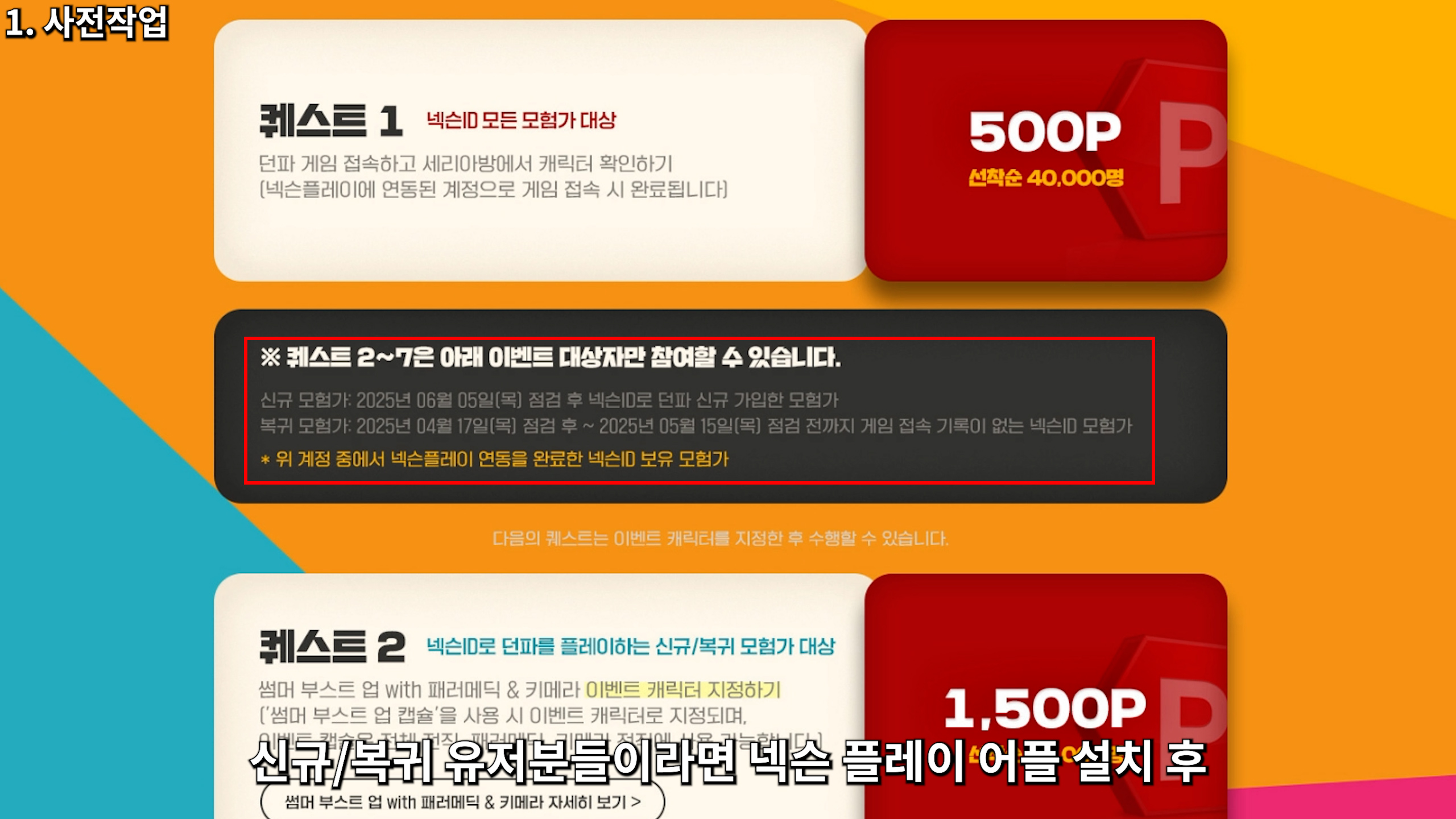 퀘스트 클리어 시 넥슨캐시로 이용 가능한 플레이포인트를 얻을 수 있으니 내용 참고해 이용하시면 되겠습니다