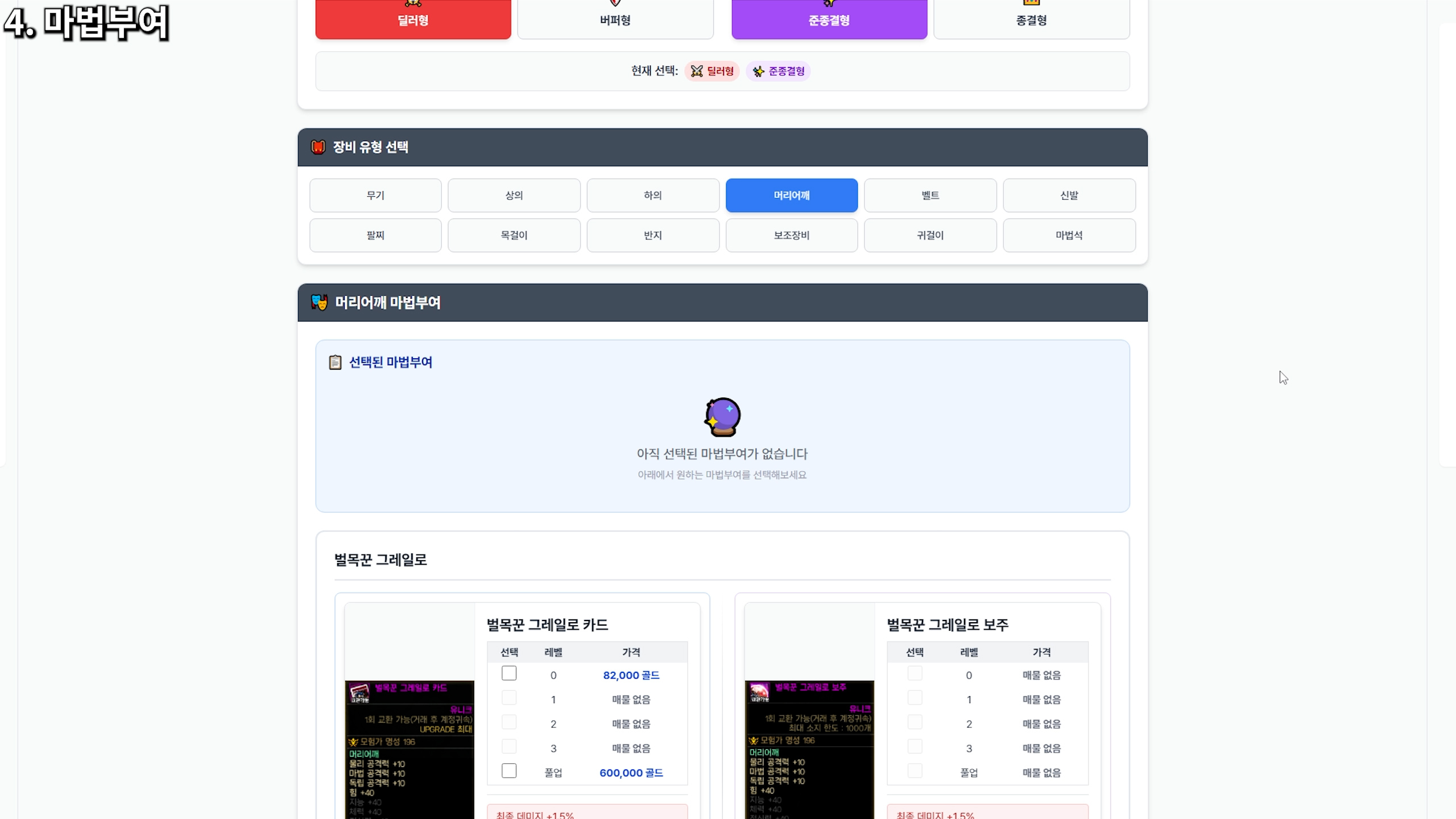버퍼의 경우 모든 속성강화 4가 붙은 것을