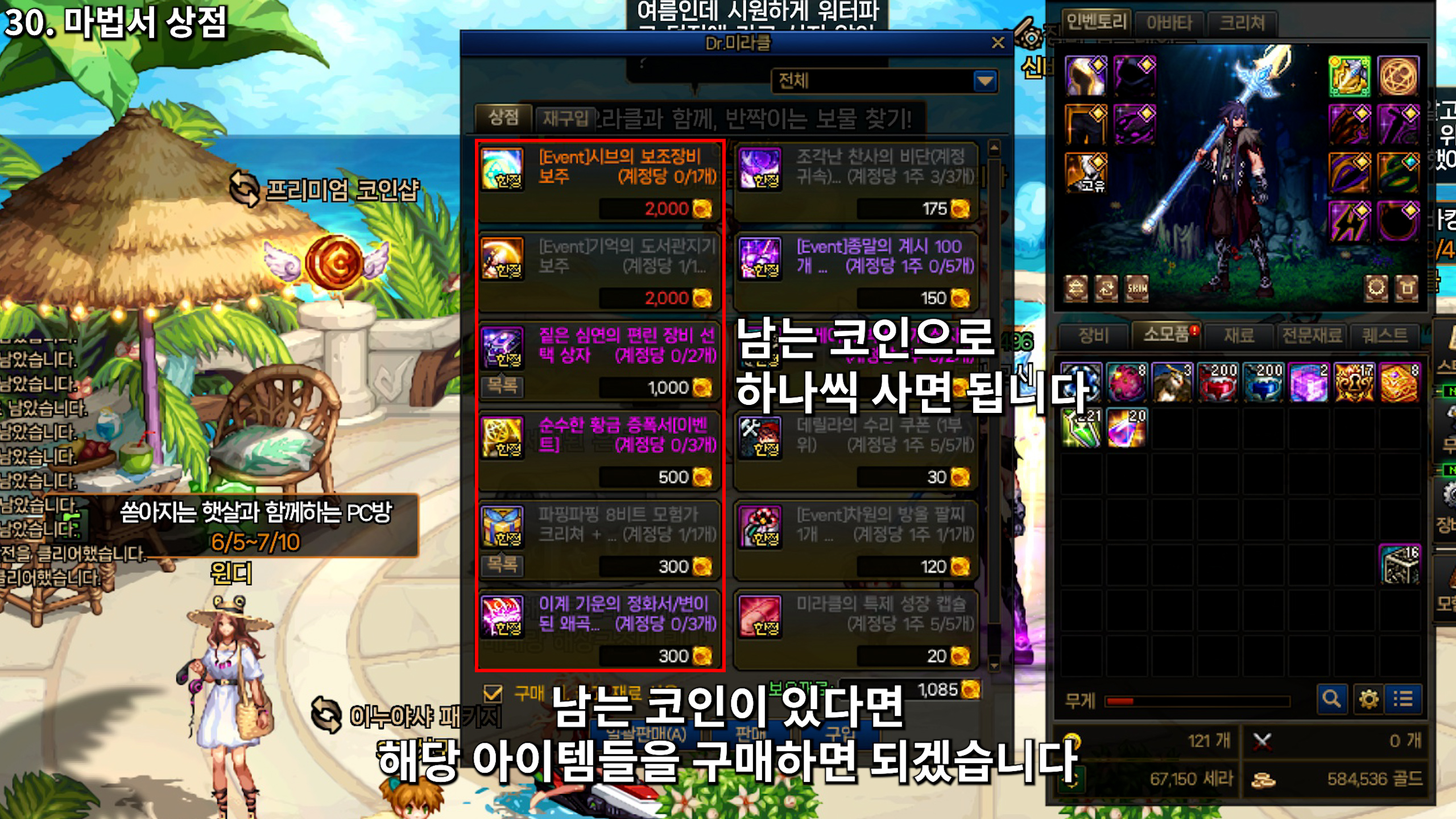 이후 남는 코인으로 왼쪽에 있는 아이템들을 구매하면 됩니다