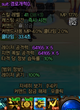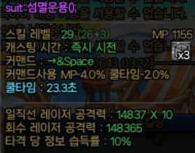 3개의 스킬을 통해 23.3초마다 125% + 150% + 110% = 385%의 정보 습득이 가능합니다.