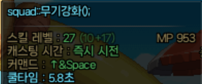 무기강화 : 지속시간 (10+3)초 = 13초 (버퍼 무기 효과)
