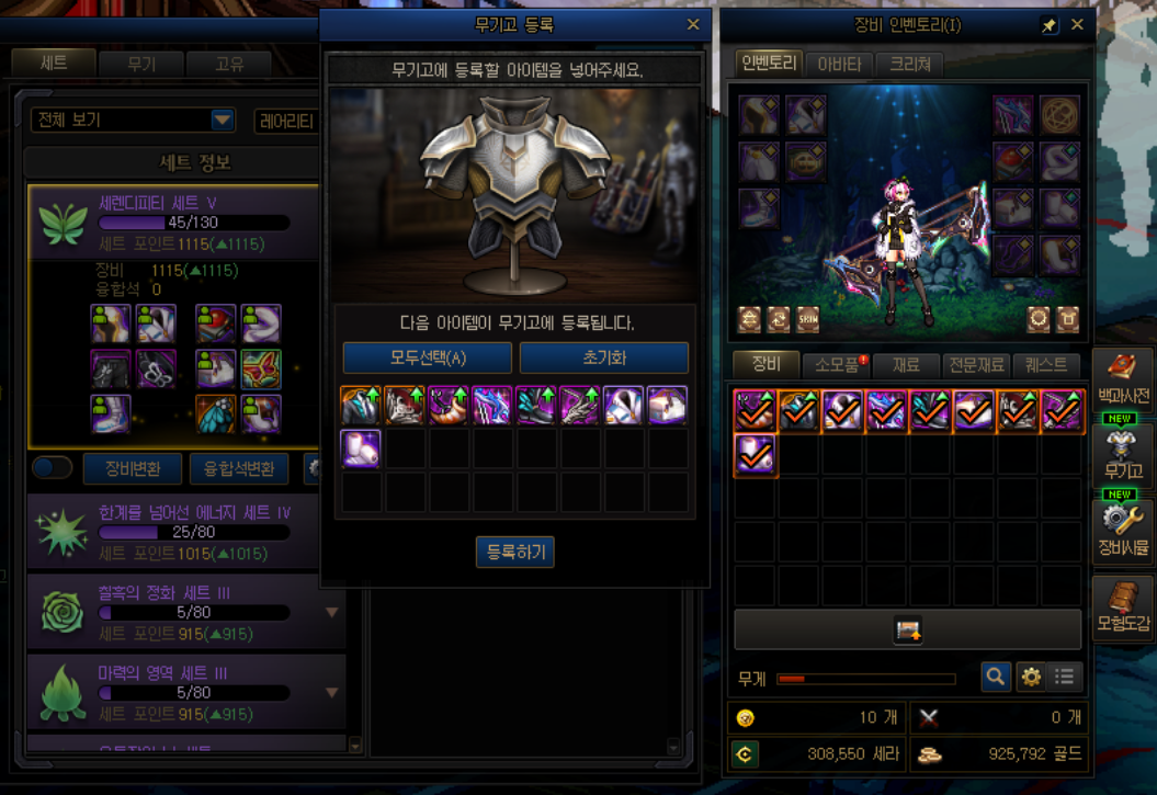 이제는 이계의 기운이 서린(흔히 말하는 ? 묻은, 똥 묻은) 장비도 무기고에서 일괄 해체가 가능합니다. (단 115레벨 장비만 해당됨)