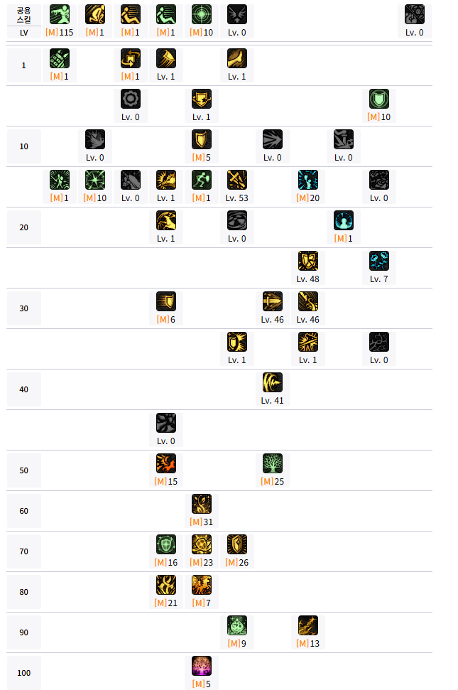 엘븐나이트는 체인중첩을 쌓기위해 1레벨만 찍고 사용하는 기본기들이 다수 있습니다.