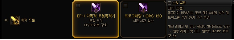 다만 메카드롭은 메카닉의 주력기이므로 쿨타임이 놀면 안되는 스킬이라