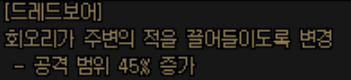 드레드보어의 범위가 상당히 커지고, 몹몰이 효과를 추가합니다.