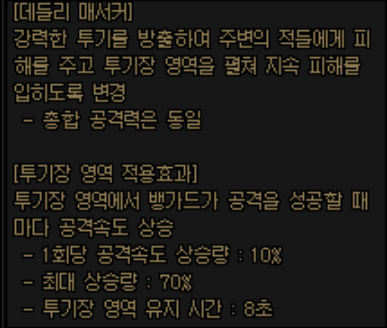 장판 데미지가 첫 타격에 합쳐졌다면 범위 증가의 크루얼 매서커와 대비하여 공격속도라는 장점이 있었을텐데 아쉬울 따름입니다.