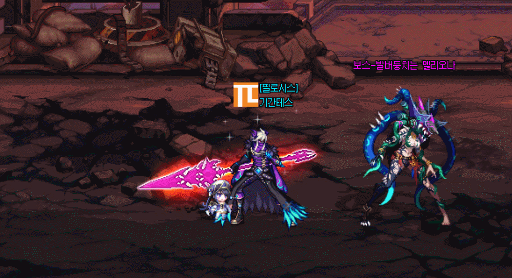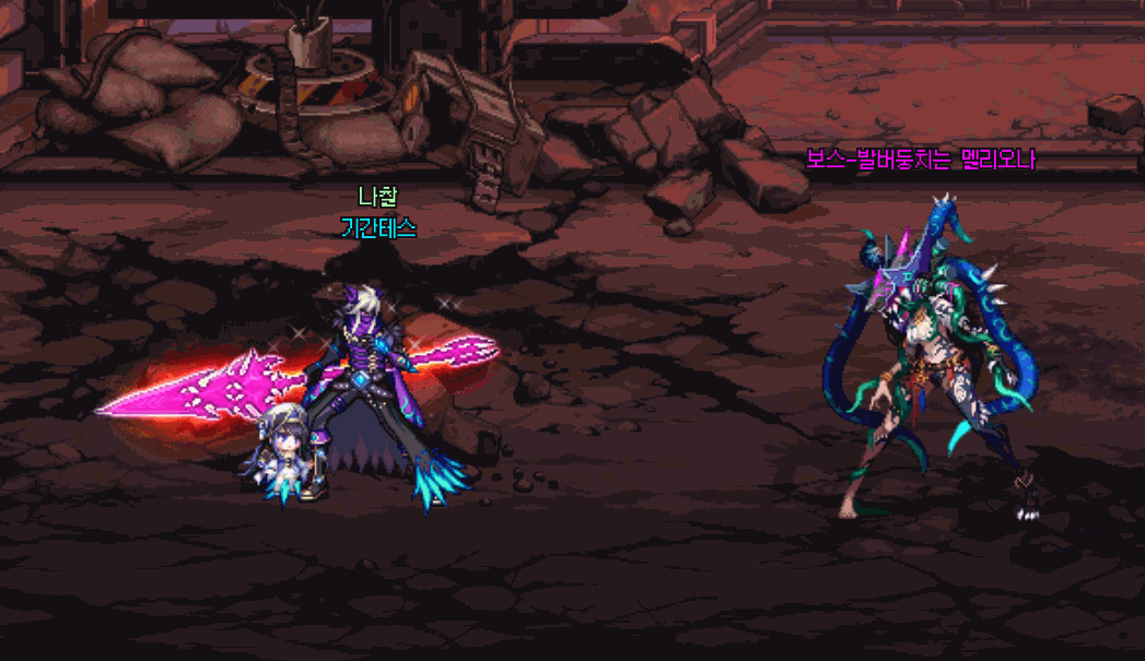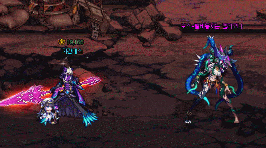 타격시 전방 임팩트 스매시를 시전하면 넘어갈 정도로 몹과 완전히 겹친 상태가 됩니다.