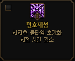 상시 슈퍼아머, 파티원 전체 공속 캐속 이속 물마방 버프, 30초마다 1회 타격 무시, 넨가드로 파티원 무적 및 HP회복, 파티원 상태이상 해제 ..(더보기)