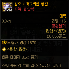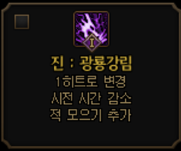 진 : 광룡강림 사용하시다가 창조 반지 (쿨타임 감소 20%) 착용 시 넘어가시면 됩니다.