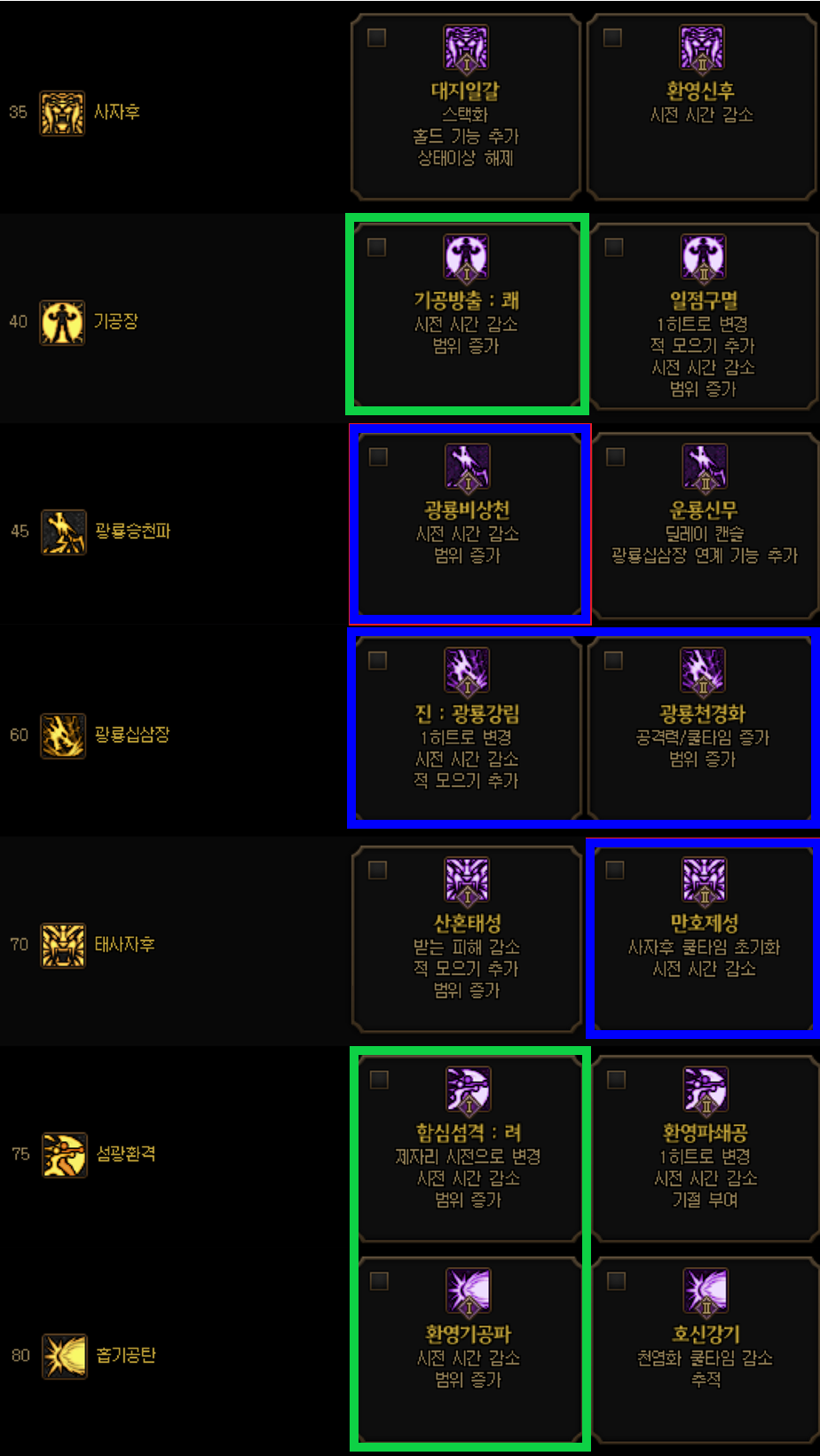 기본기 트리는 광룡승천파 스킬을빼고 기옥탄, 사자후를 마스터하여 딜 고점을 높이는 방법입니다.
