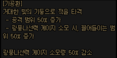 뇌전각 및 천뢰호각이야 자주 쓰는 스킬이니 기공환 스택이 놀 일은 없겠지만..나선 게이지와 관련하여 문제가 될 가능성이 있습니다.