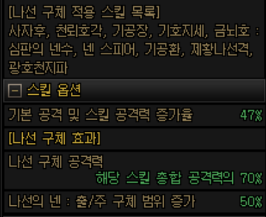 나선 게이지 소모량은 목을 축여주는 좋은 기능입니다. 하지만 감소량이 너무 짜고 붙어있는 스킬이 사자후.