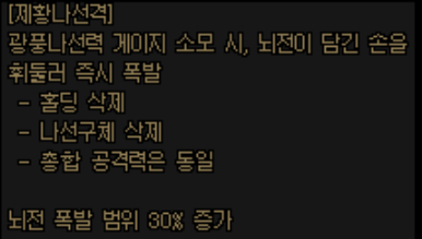 천지격뢰의 효율이 너무나도 좋은지라 이 뇌섬각을 선택할 이유는 없겠네요.