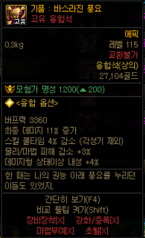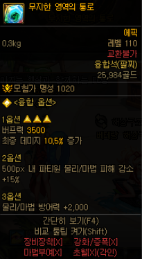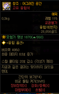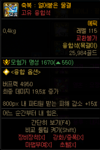 하지만 범위 25%를 얻을바에는 기존의 110레벨 무지 에픽 융합석을 끼거나 이 자리에 나벨 세트 융합석을 끼는것이 낫다
