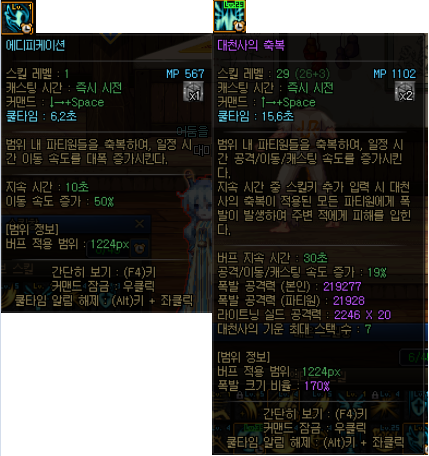 특징으로는 4초안에 모든 파티원 버프를 쓸 수 있다는점