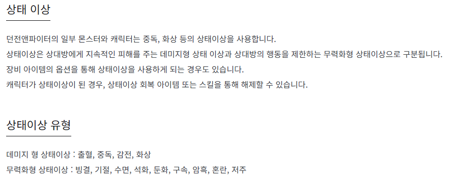 상태 이상의 종류에 대해 관심이 있다면 던파 공홈에서의 설명을 찾아보자
