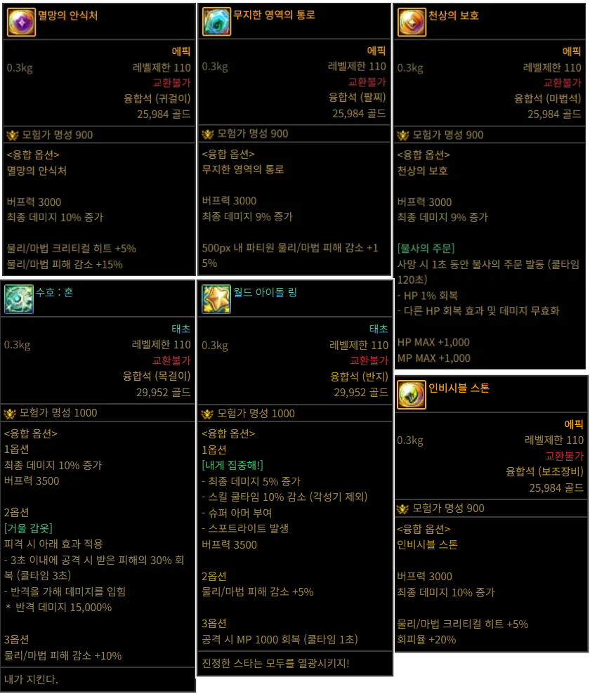 기존 110레벨 에픽 융합석들의 유틸은 베누스와 나벨 융합석을 끼다보면 다 사라지게 된다