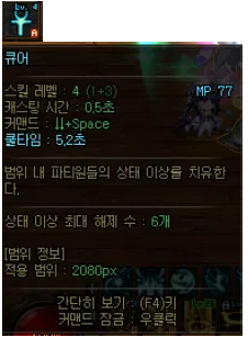 쿨짧은 광역 큐어로 파열, 출혈, 감전, 화상 등의 각종 상태 이상을 수시로 제거해주자