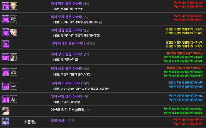 쿨타임 감소가 높은 세팅의 경우 선택할 수 있습니다.