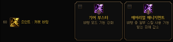 60제 스킬(조인트:카펫바밍)의 경우 무적용으로 1투자해주시면 긴급상황에 유용하게 사용이 가능합니다.