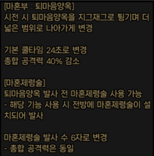 퇴마음양옥 자체의 데미지가 낮아지고, 쿨타임이 짧아지는 부분이 강점이라고 생각하기에는 어려워서