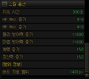 지속시간이 10초라 버퍼로 플레이하면서 몹을 자주 타격해줘야 하는 이유입니다.